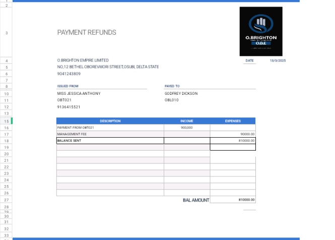 The tenant with the code OBT021 Has renewed her rent, Here is the receipt of the remittance made to you Download Attachment 1 Me ~ Thursday, 13th Mar, 2025 03:28pm |